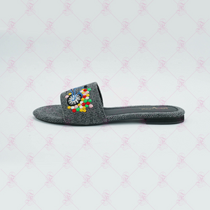 Discover a playful yet refined style with the Cycle Embroidered Flats by Footler. These flats showcase a distinctive cycle-motif embroidery across the upper, offering a charming twist on everyday footwear. Available in versatile tones like grey and classic black, they bring personality to your collection while remaining easy to pair with jeans, dresses or ethnic wear.