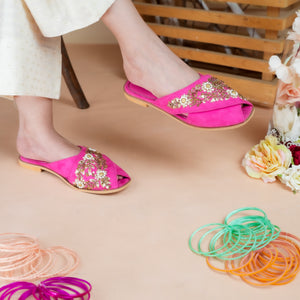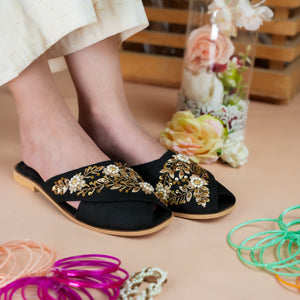 Step into tradition with a modern twist in the Embroidered Bridal Peshawari by Footler. These handcrafted flats feature intricate embroidery, blending cultural heritage with contemporary design. Available in classic colors like black and pink, they add a unique flair to both traditional and modern outfits.