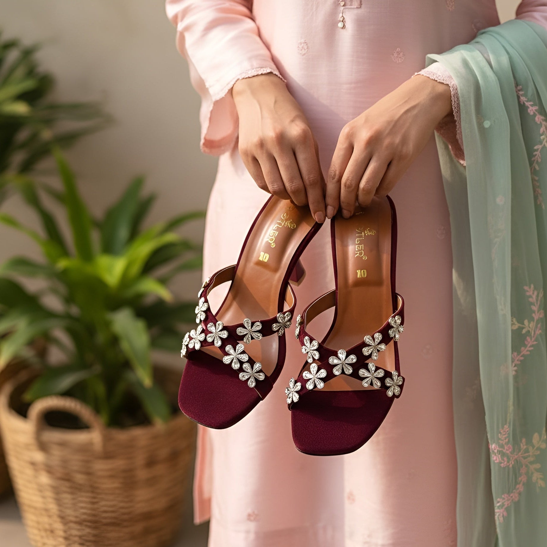 Upgrade your footwear collection with the Flower Heels and enjoy the perfect combination of comfort and style. Step into sophistication and make a statement with every step!