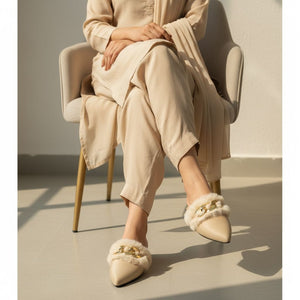 Step into unparalleled comfort and effortless elegance with our Furr Mule for Women. These mules redefine everyday luxury, combining a classic pointed-toe silhouette with a plush, cloud-like faux fur lining that surrounds your feet in warmth. Designed for both relaxing at home and stepping out in stylish comfort, this mule adds a touch of cozy sophistication to any look.