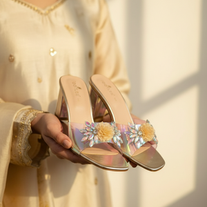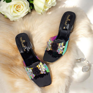 Make a striking entrance in the Holographic Heel by Footler a mesmerizing fusion of futuristic design and elegant flair. These heels feature a holographic upper that plays with light and color, creating an effect that shifts as you move. Available in classic black and gold variants, they’re designed to complement a wide range of outfits from chic evening wear to modern party ensembles.