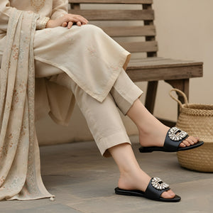 Discover refined elegance with the Oval Broach Flats by Footler designed for women who seek style and comfort in one. These flats feature a sleek slip-on silhouette paired with a distinctive oval broach embellishment, offering both subtle refinement and everyday versatility. With classic shades like black and mustard available, they suit both casual and dressier looks.