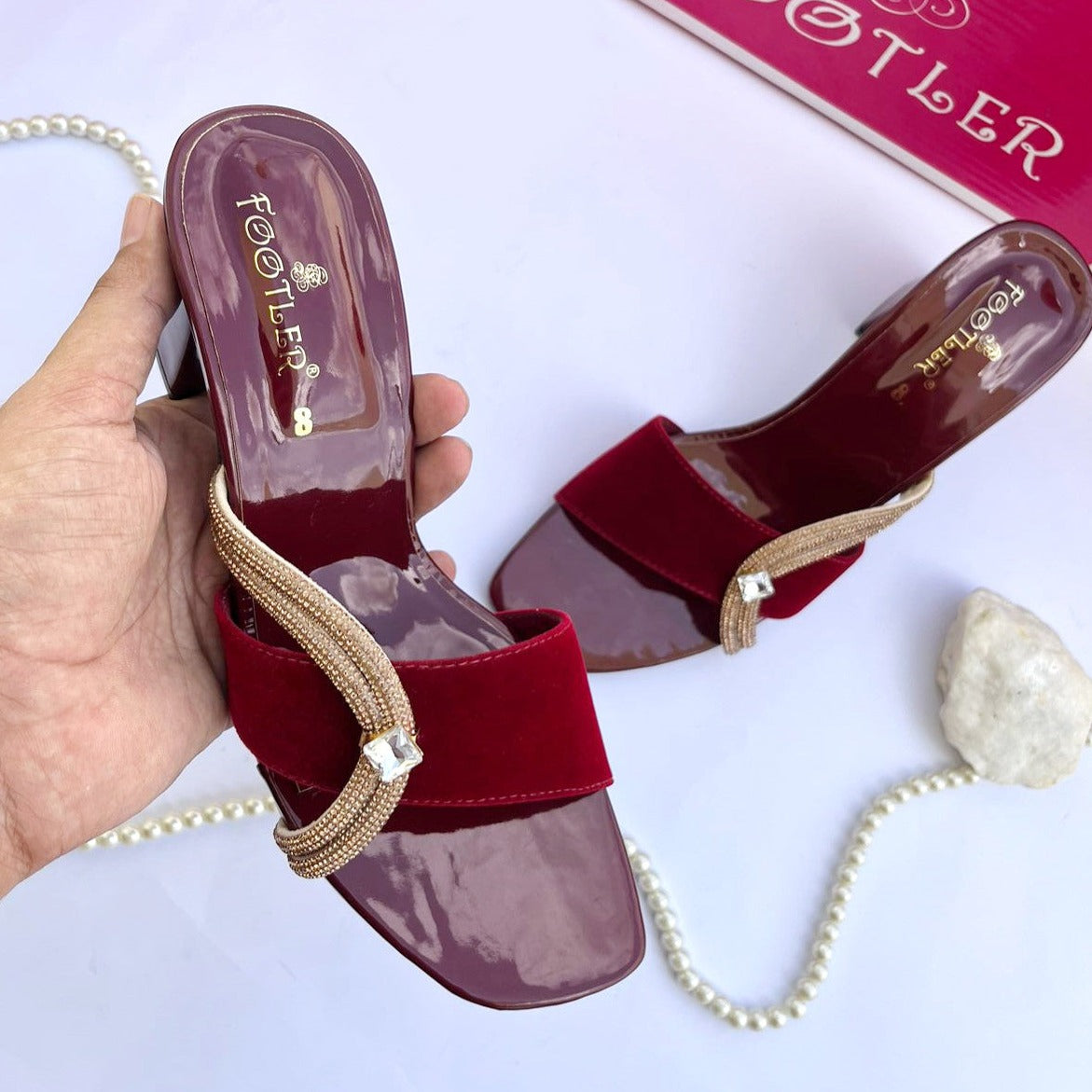 Introduce distinctive flair to your footwear collection with the Side Nug Heel by Footler a pair that fuses artisanal beadwork with modern design. These slip-ons feature intricate bead embroidery along the side, adding texture and visual depth to a flat heel silhouette. Available in rich shades like black and red, they are crafted to stand out while offering everyday wearability.