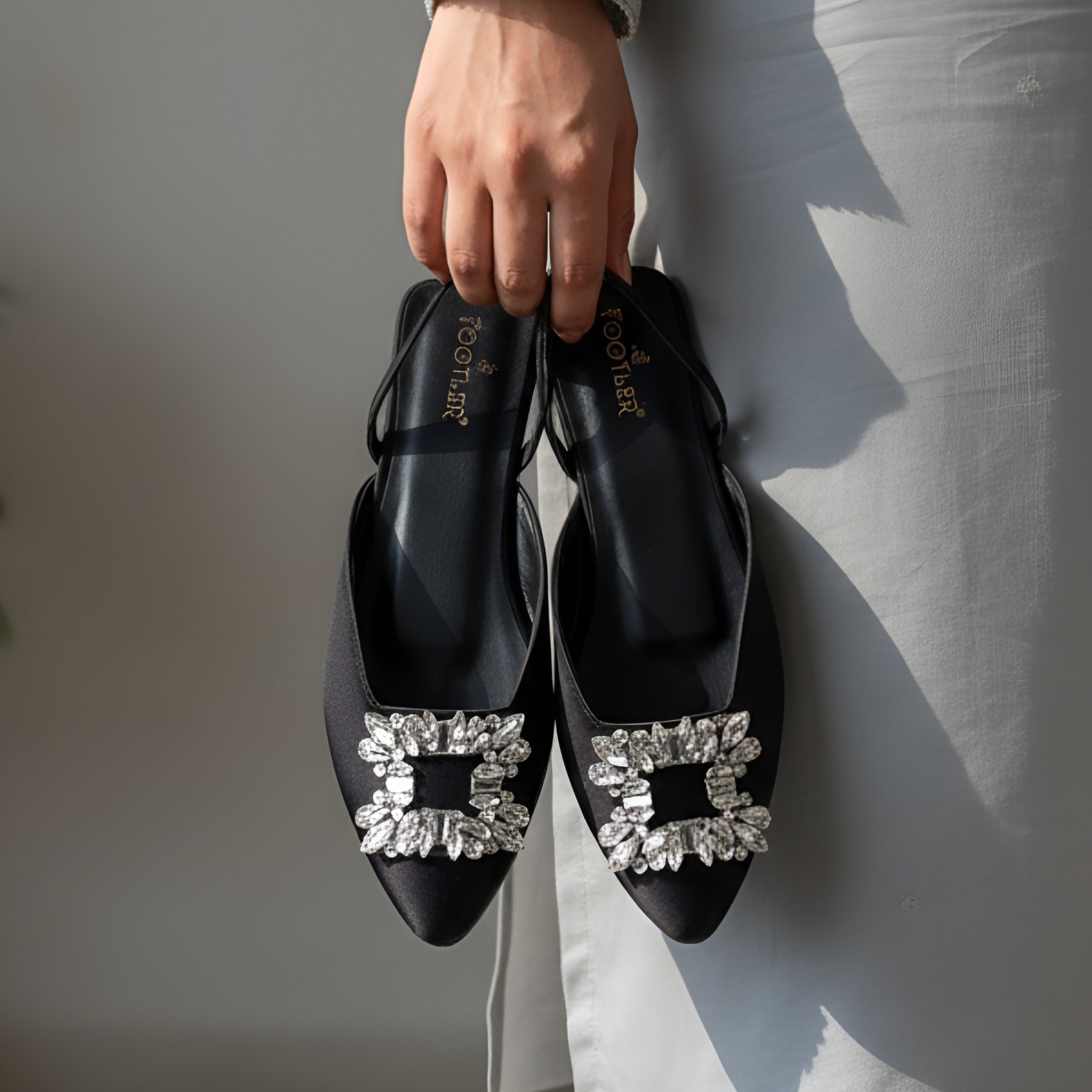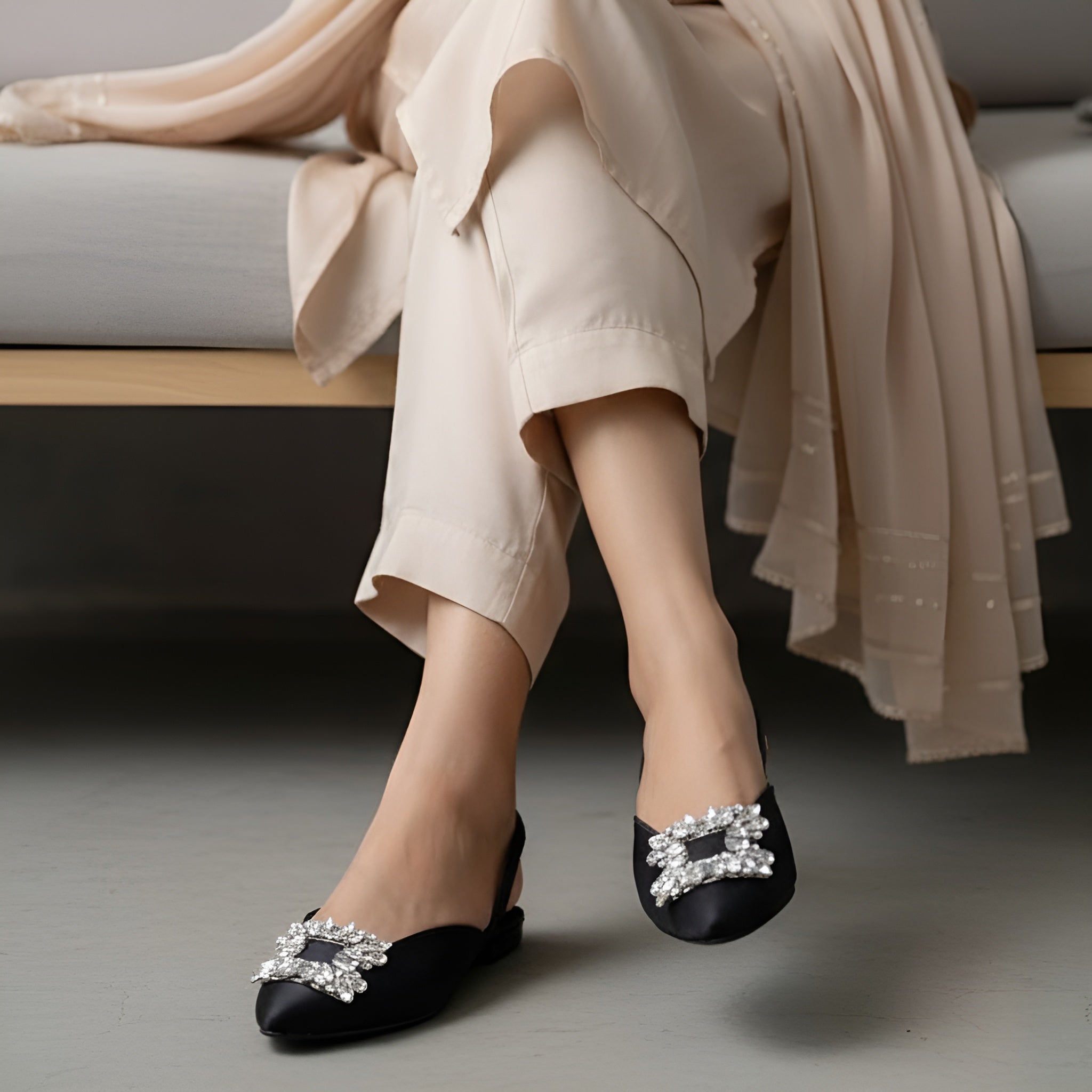 Elevate your style with our stunning SQUARE BROACH FLATS, designed for women who love to combine tradition with modern elegance. These flats feature exquisite beading that shines beautifully, making them ideal for both casual outings and special occasions.